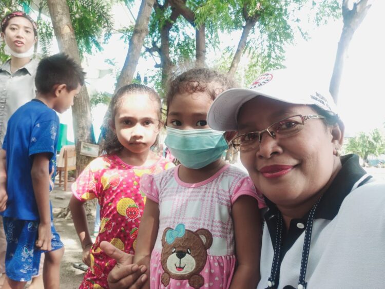 Ketua Bidang Trauma Healing dan Bidang Difable, Ina Tifaona dan Noben Da Silva datang untuk menggelar kegiatan ini ditengah duka anak-anak erupsi gunung Ile lewotolok