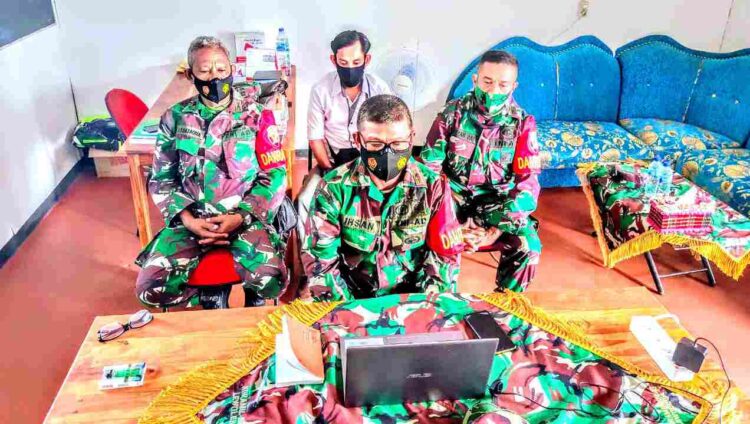 Lidik News.Com | LEWOLEBA – Danramil jajaran Kodim 1624/Flotim, Wilayah Kabupaten Lembata,Bertempat di Kantor Koramil 1624-03/Lewoleba, Kelurahan Lewoleba Tengah, Kabupaten Lembata Senin (18/01) dalam Video confrence (VICON) membahas terkait penanganan Covid-19.Dalam Video Confrence (VICON) membahas beberapa poin diantaranya adalah kesiapan gudang penyimpanan vaksin tenaga medis, data yang akan divaksin, kluster dan penyebarannya, dan langkah-langkah satuan di masing-masing daerah termasuk kesiapan personel satuan dalam mendukung upaya Pemerintah daerah untuk mencegah Covid-19 yang kian mewabah.