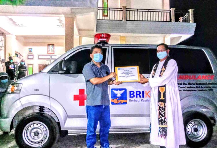 Komunitas BRI Kasih gelontorkan 1 unit Mobil Ambulance Kepada gereja St.Maria Baneux pada malam ini pukul 20.15.Wita bertempat di halaman rumah Pastoran, penyerahan ini langsung diserahkan oleh Kepala BRI KCP Lewoleba Mulyadi bersama beberapa Anggota BRI KCP,tak hanya itu dalam penyerahan 1 unit mobil ambulance oleh pimpinan BRI KCP disertai dengan berita acara sebagai bukti bahwa mobil bantuan ambulance ini sudah diserahkan kepada pihak gereja yang diterima oleh Romo Blasius Masang Kleden,Pr tepat di rumah Pastoran yang ada di lingkup gereja St.Maria Baneux.