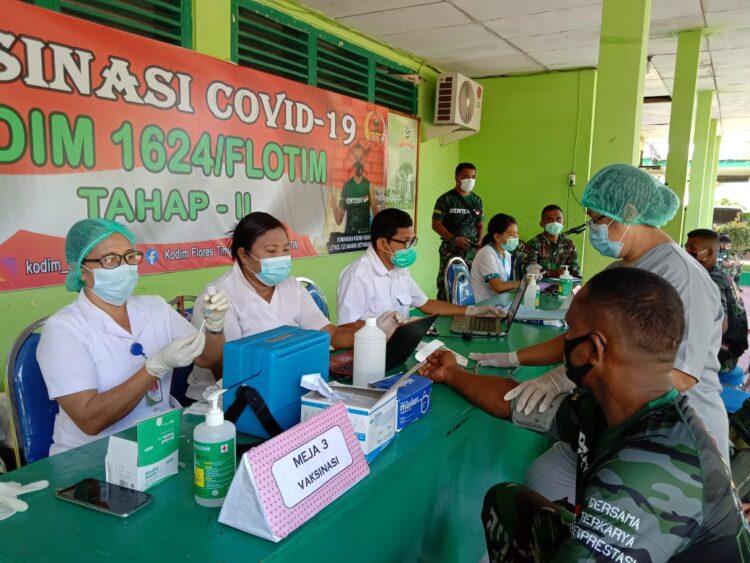 Vaksinasi Covid-19 yang diberikan untuk anggota Kodim 1624/Flotim yang intens bersentuhan langsung dengan warga masyarakat, terutama personel yang tergabung dalam kegiatan PPKM dan Tracer satgas Covid-19, di wilayah Koramil Masing-masing, pungkas Dandim 1624/Flotim.*(Pendim 1624 Flotim)
