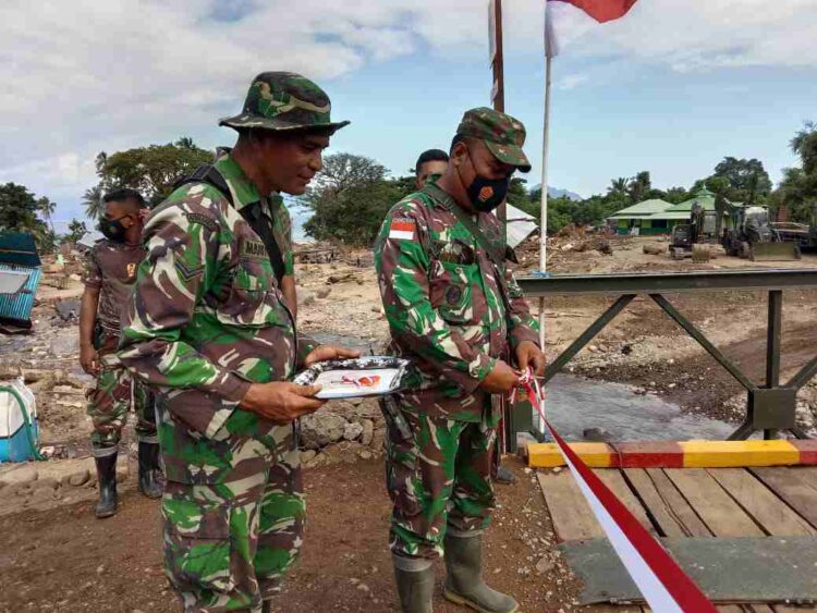 Lidik News.Com | ADONARA – Danramil 1624-02/Adonara, Kapten Inf Achmad Satyadi Jatmiko meresmikan Jembatan Bailey di kelurahan Waiwerang, Pada Jumat. (16/04/2021) pukul 10:00 Wita, Jembatan Ini yang sementara menggantikan jembatan yang ambruk pada awal minggu 04 April 2021 hingga memutuskan akses jalan alternatif  Desa Waiburak dan Kelurahan Waiwerang, Kecamatan Adonara Timur, Kabupaten Flotim.