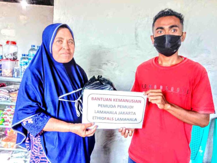 LIDIK NEWS.COM | LAMAHALA- Pemuda Pemudi Lamahala Jakarta bergandengan tangan dengan Ethiofals Lamahala Jaya membagikan kado Ramadhan 1442 H berupa mukena dan baju untuk para pengungsi dampak bencana alam banjir bandang di wilayah Kecamatan Adonara Timur (Waiwerang – Waiburak).
