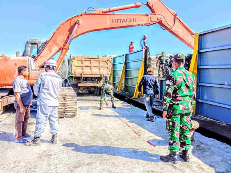 LIDIK NEWS.COM | LEWOLEBA -Dandim1624/Flotim, Letkol Czi Imanda Setyawan, S.T., M.I.P Didampingi Danramil 03/Lewoleba, Kapten Inf Horiyanto bersama Perwira Penghubung, Mayor Chb Ihsan Kawal Pembongkaran bahan material perumahan Risha di pelabuhan Lewoleba. Kecamatan Nubatukan, Kabupaten Lembata. Pada Kamis (27/05/2021) Pukul 08:00 Wita.
