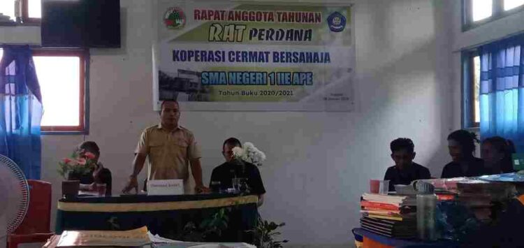LIDIK NEWS.COM | LEMBATA – Dalam mengembangkan usaha dan menata wirausaha dilingkungan sekolah maka telah didirikan sebuah koperasi yang diberikan nama Cermat Bersahaja yang didirikan sejak tahun 2020 lalu atas kesepakatan seluruh dewan Guru dan Tata usaha dalam lembaga pendidikan. Pantauan media pada Senin 24 Januari 2022 bertempat di ruang SMAN 1 Ile Ape pada pukul 12.30.Wita., dilaksanakan Rapat Anggota Tahun buku 2021 dan Program kerja koperasi Tahun 2022 berjalan baik sesuai mekanisme yang disepakati dalam tata tertib (Tatib).