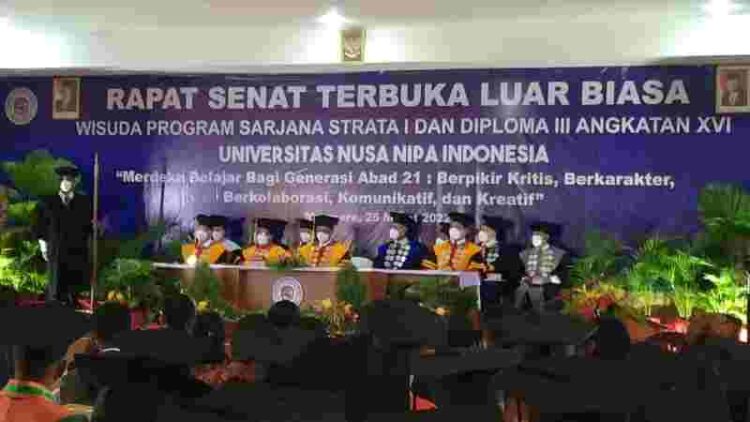 LIDIK NEWS.COM | MAUMERE – Universitas Nusa Nipa Indonesia mewisuda 428 sarjana dan diploma Angkatan ke-XVI Tahun Akademik 2021/2022 yang berlangsung di Aula Nawacita, Jumat (25/3/2022) siang. Seremonial wisuda dipimpin oleh Rektor Universitas Nusa Nipa, Dr.Ir.Angelinus Vincentius M.Si.
