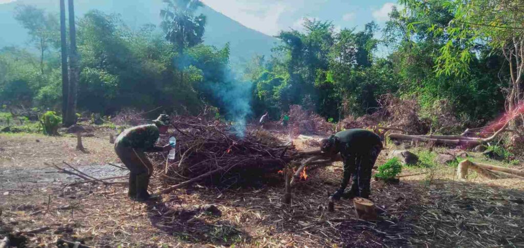 Oleh karena itu Babinsa Koramil 1624-01/ Larantuka, Serda Jasinto dan beberapa orang rekannya dari Koramil 1624-01/Larantuka melaksanakan pembersihan di lahan yang dijadikan lahan budidaya kelor di Desa Lewoloba, Kecamatan Ile Mandiri Kabupaten Flores timur pada Selasa, (17/05/2022).
