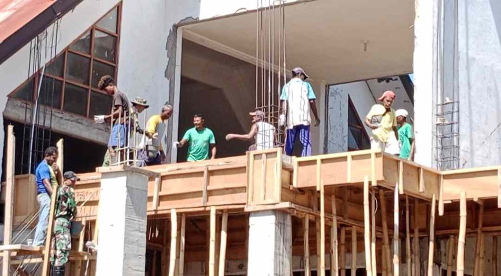 Pengecoran Menara Gereja melibatkan personil Polres, TNI, Lapas Lembata, OMK dan juga para jemaat Gereja Gemit Solafide.