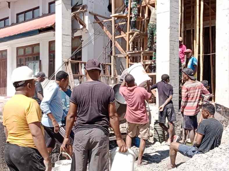Pengecoran Menara Gereja melibatkan personil Polres, TNI, Lapas Lembata, OMK dan juga para jemaat Gereja Gemit Solafide.