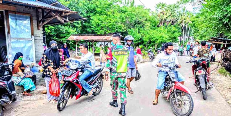 Ditempat terpisah tampak Serda Liam lasar Babinsa jajaran Koramil 1624-05/Solor Kodim 1624/Flotim sedang melaksanakan Pendisiplinan Protokol Kesehatan di Desa Lohayong Kecamatan Solo Timur Kabupaten Flotim untuk mengingatkan warga masyarakat untuk selalu mentaati Prokes Covid-19 dengan menggunakan masker, jaga jarak dan menghindari kerumunan serta rajin mencuci tangan dengan hand sanitizer atau dengan sabun.*(Pendim Flotim)