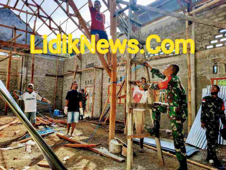 LIDIK NEWS.COM | FLOTIM – Babinsa Koramil 1624/Flotim Serka Mikael Ola Bersama 7 Anggota Koramil melaksanakan kegiatan kerja bakti bersama masyarakat melanjutkan pembangunan Gereja, Gereja St. Statis bertempat, Desa Lamawolo, Kecamatan Ile Boleng, Kabupaten Flotim, Pada Sabtu (19/06/2021). Pukul 08:00 Wita.