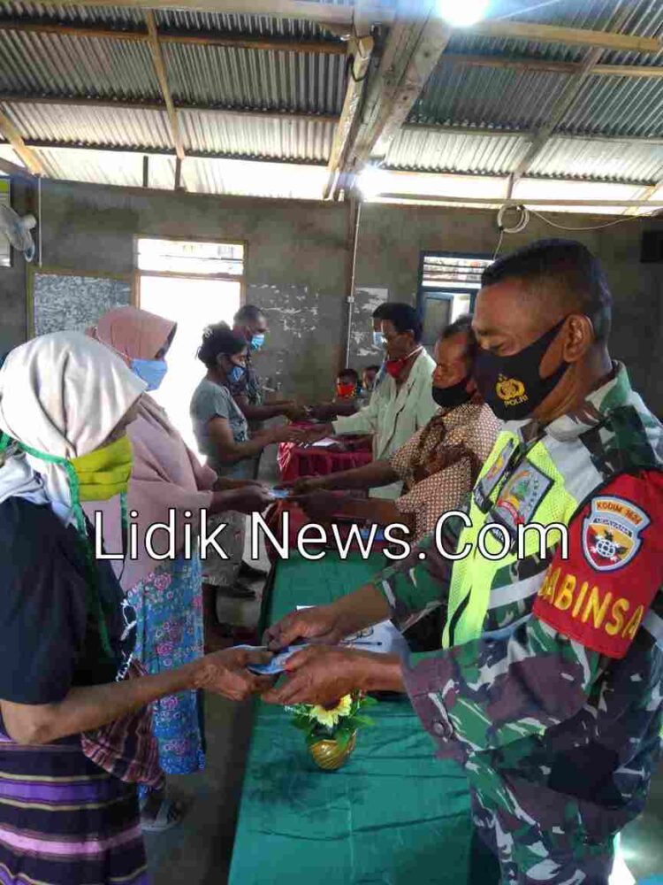 Dalam pembagian BLT DD ini dengan sistem antrian dan nanti di panggil menggunakan pengeras suara oleh petugas, sehingga tidak membuat kerumunan massa karena situasi pandemi Covid 19 belum berakhir,” kata Danramil