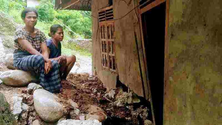 “Untuk sementara kami mengungsi di rumah tetangga, karena kondisi rumah kami tidak bisa ditempati lagi,” Ujarnya