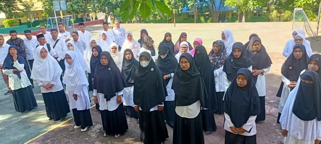 LIDIK NEWS. COM | ADONARA – Dalam rangka menindaklanjuti Surat Direktur Jendral Pendidikan Islam perihal Pelaksanaan PK Online PKB Guru PAI, maka Kepala Kantor Kementerian Agama Kabupaten Flores Timur, Yofep Aloysius Babaputra, S.Fill., MM, berikan arahan kepada peserta ujian Pemetaan Kompetensi (PK) Online Guru Pendidikan Agama Islam (PAI) di lapangan upacara MTs Negeri 1 Flores Timur, sebelum masuk ke ruang ujian Laboratorium Komputer MTs Negeri 1 Flores Timur. Rabu, 10/05/2023.