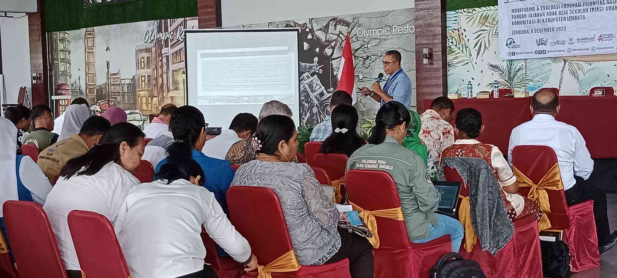 Monitoring dan Evaluasi Program Prioritas Nasional Desa Pangan Aman, Pangan Jajanan Anak Usia Sekolah (PJAS) Aman dan Pasar Pangan Aman Berbasis Komunitas di Kabupaten Lembata, Lewoleba (08/12/2023).