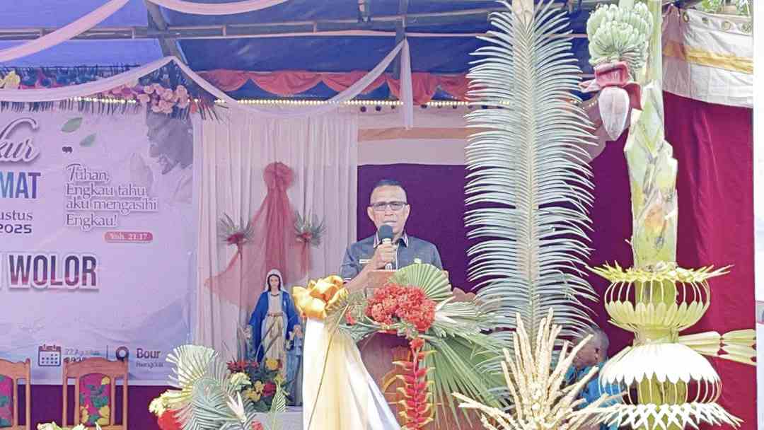 Dalam sambutannya, Wakil Bupati juga menekankan pentingnya sinergi antara Gereja dan Pemerintah dalam menghadapi tantangan bersama, baik persoalan iman, sosial, ekonomi, maupun masalah stunting yang kini menjadi perhatian serius. “Gereja dan Pemerintah harus saling menopang, membangun kerukunan, meningkatkan kualitas hidup umat, serta memperkuat moral masyarakat,” tegasnya.
