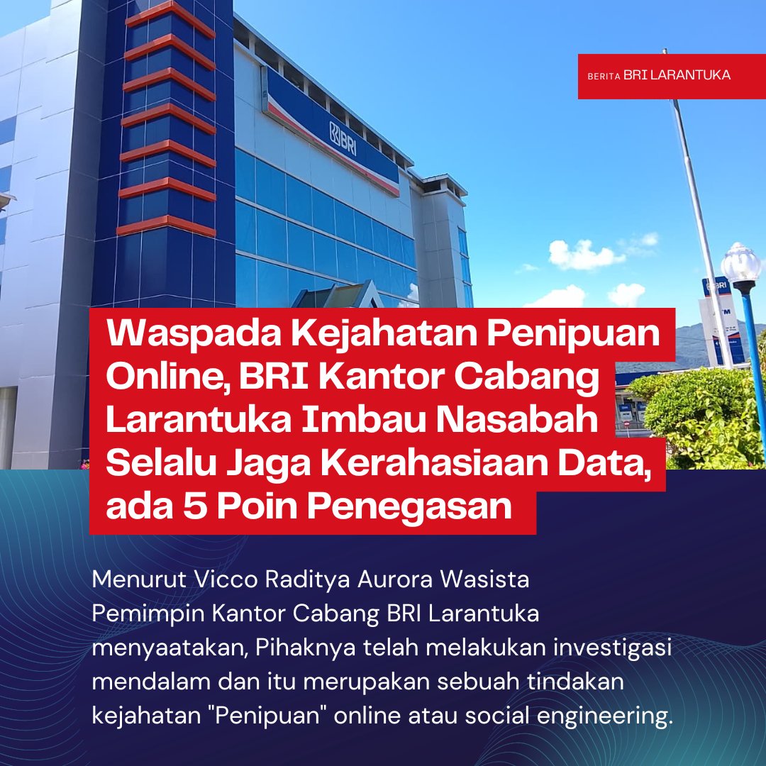 Waspada Kejahatan Penipuan Online, BRI Kantor Cabang Larantuka Imbau Nasabah Selalu Jaga Kerahasiaan Data, ada 5 Poin Penegasan