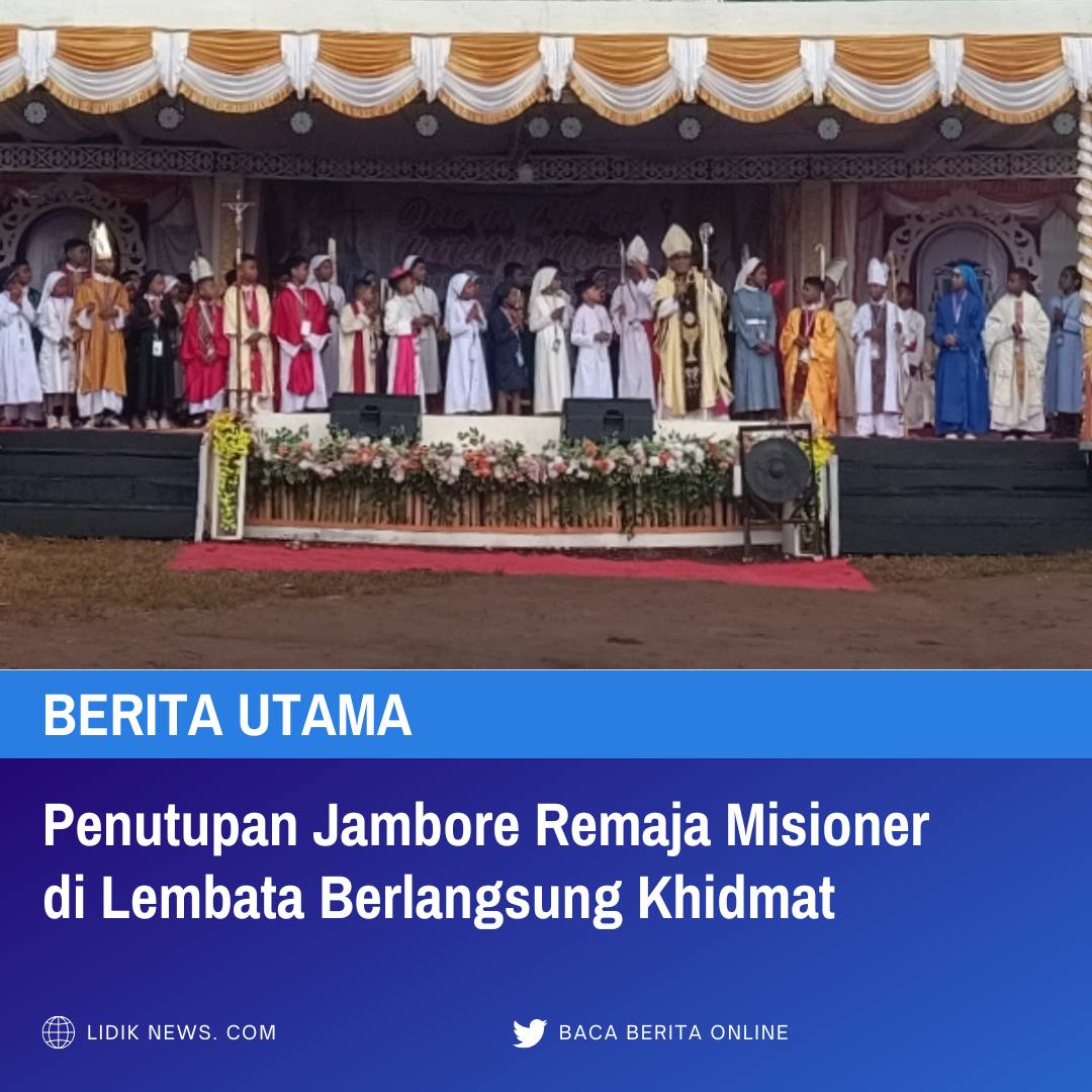 LIDIK NEWS. COM | LEMBATA, Prokompimkablembata — Ribuan anak dan remaja Katolik tetap teguh mengikuti prosesi meski guyuran hujan membasahi lokasi penutupan Jambore Anak dan Remaja Misioner Dekenat Lembata di lapangan sepak bola, Desa Pada, Kecamatan Nubatukan, Minggu (26/4/2026).