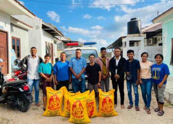 LIDIK NEWS.COM | LARANTUKA - Pengusaha dari toko Alem Mart Group kota Larantuka memberikan paket sembako kepada para penerima bantuan....